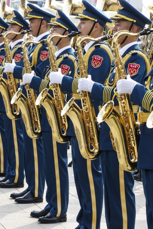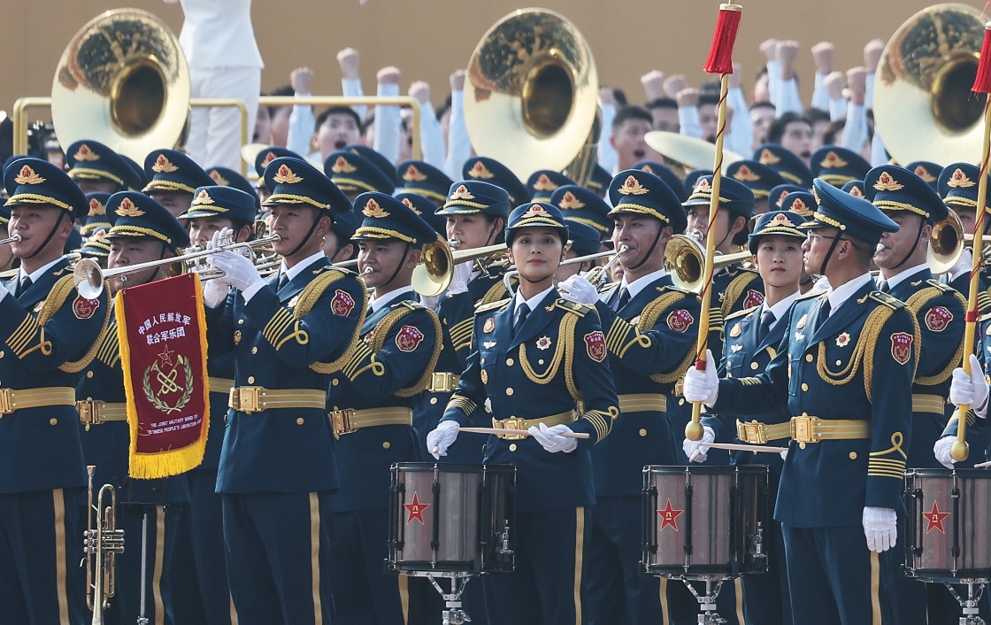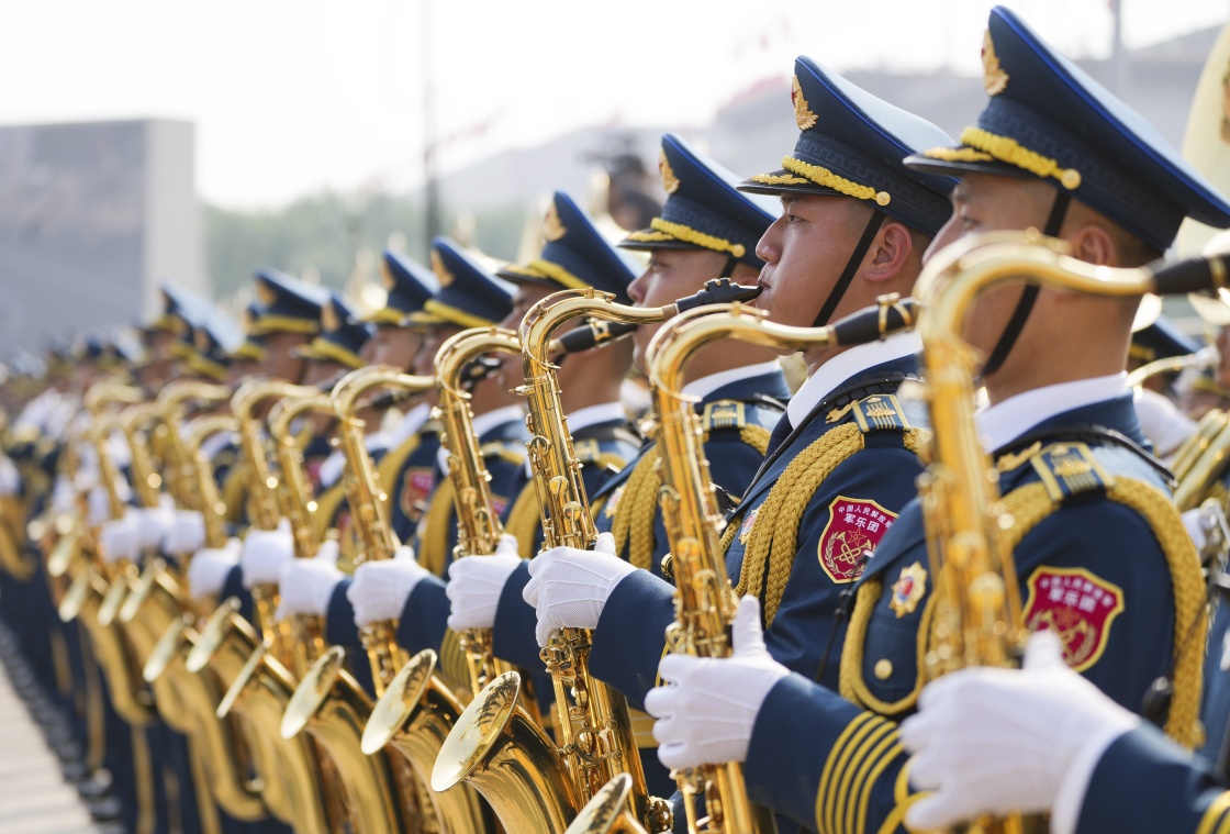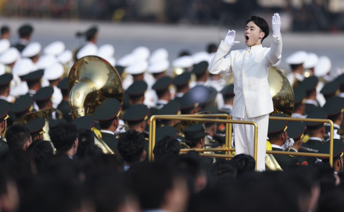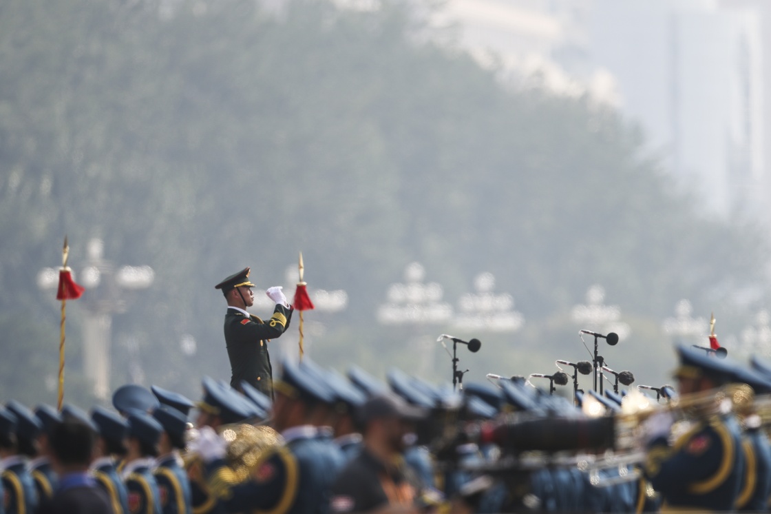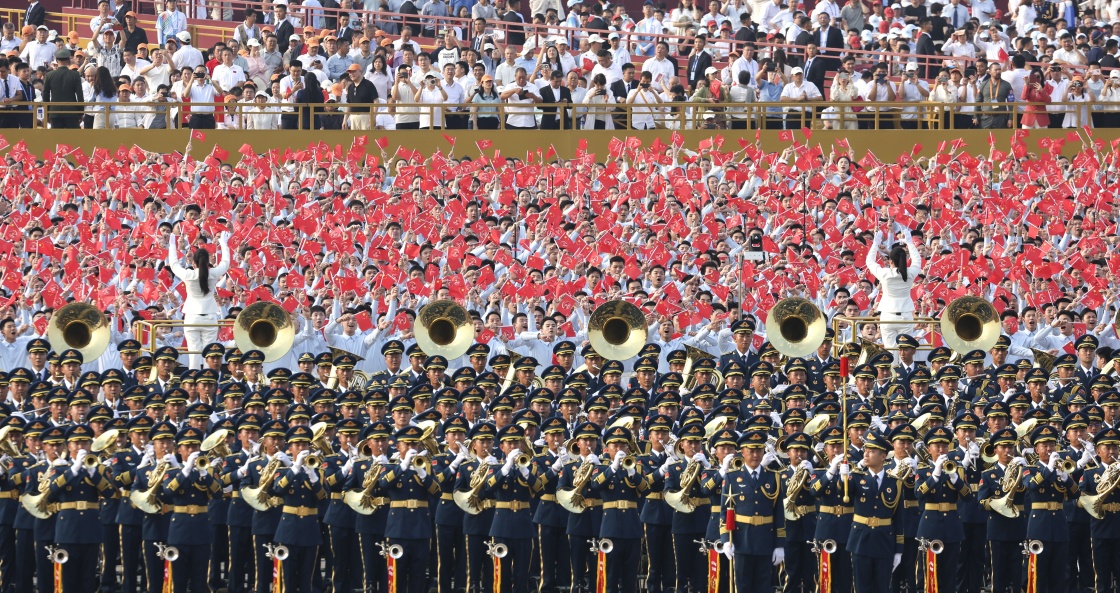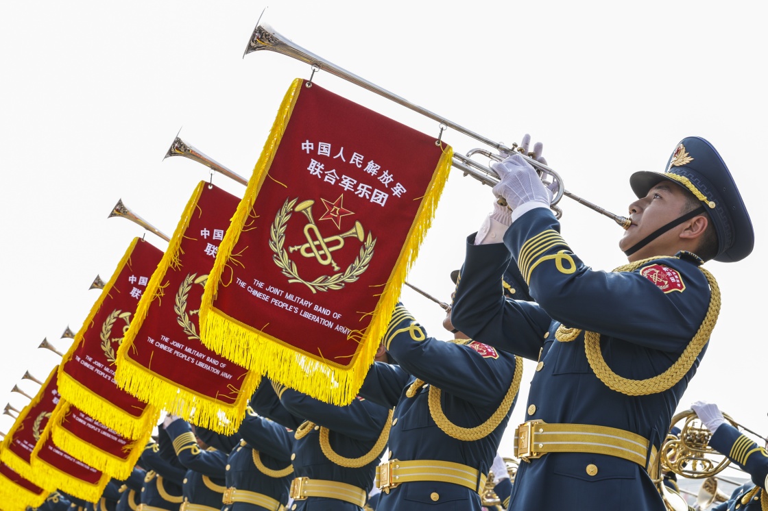 9月3日,紀(jì)念中國(guó)人民抗日戰(zhàn)爭(zhēng)暨世界反法西斯戰(zhàn)爭(zhēng)勝利80周年大會(huì)在北京隆重舉行。這是中國(guó)人民解放軍聯(lián)合軍樂團(tuán)在演奏。