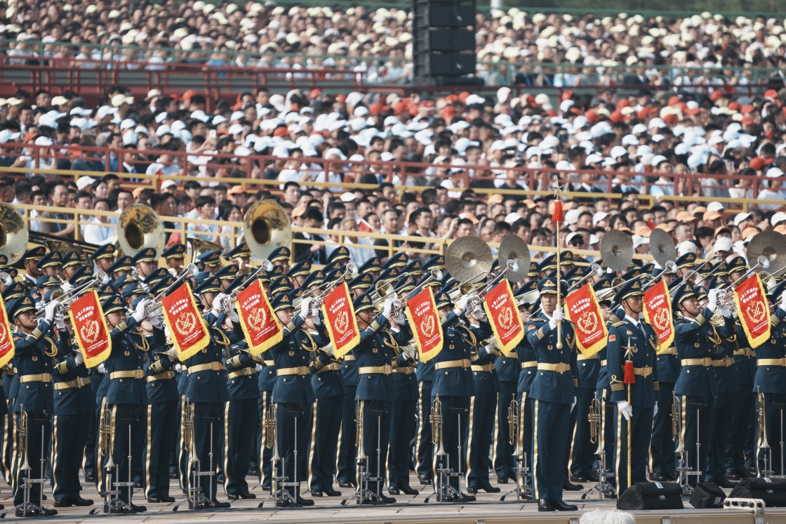 9月3日,紀(jì)念中國(guó)人民抗日戰(zhàn)爭(zhēng)暨世界反法西斯戰(zhàn)爭(zhēng)勝利80周年大會(huì)在北京隆重舉行。這是聯(lián)合軍樂團(tuán)。