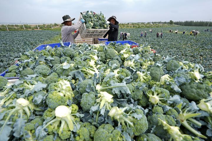 2025年7月18日,工作人員在寧夏固原市原州區(qū)彭堡鎮(zhèn)萬(wàn)畝冷涼蔬菜基地運(yùn)輸西蘭花。固原依托高海拔、氣候冷涼等“冷資源”優(yōu)勢(shì),大力發(fā)展冷涼蔬菜產(chǎn)業(yè),著力打造“六盤山冷涼蔬菜”區(qū)域公用品牌。目前已建成冷涼蔬菜規(guī)模化種植基地130余個(gè),種植面積穩(wěn)定在50萬(wàn)畝,年產(chǎn)鮮菜200萬(wàn)噸以上?!傲P山冷涼蔬菜”這張打造的“綠色名片”,已成為當(dāng)?shù)剜l(xiāng)村振興發(fā)展之路上的“熱產(chǎn)業(yè)”。
