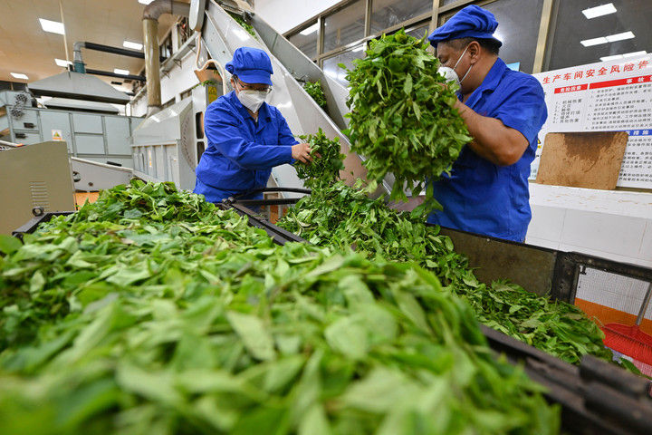 2025年6月7日,工人在海南省農(nóng)墾五指山茶業(yè)集團(tuán)股份有限公司保亭金江五指山分公司茶廠加工茶葉。海南大葉茶是海南省中部山區(qū)特有的茶種,在2024年被證實(shí)和發(fā)現(xiàn)是一種新的山茶屬物種。目前,五指山、保亭、白沙等市縣不斷擴(kuò)大種植規(guī)模,將茶產(chǎn)業(yè)作為鞏固脫貧攻堅(jiān)和推進(jìn)鄉(xiāng)村振興的重要抓手,把綠葉變成百姓致富“黃金葉”。