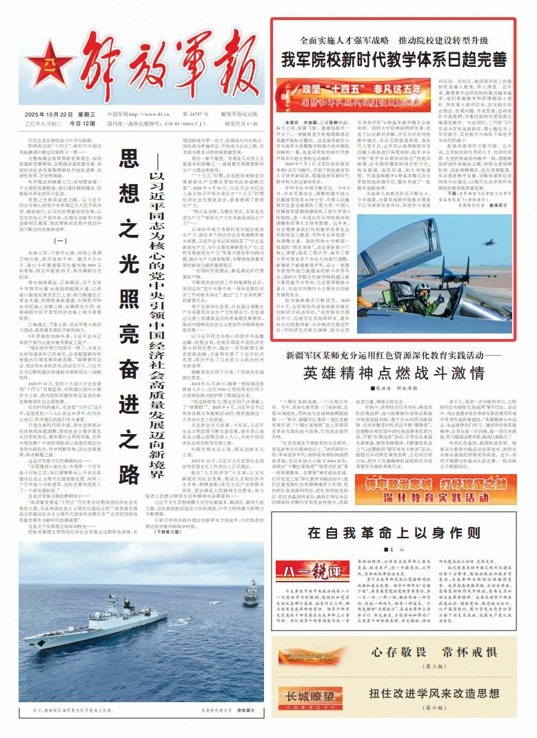 來(lái)源:中國(guó)軍網(wǎng)-解放軍報(bào) 作者:齊旭聰 張琳 責(zé)任編輯:郭妍菲 發(fā)布:2025-10-22 06:16:54