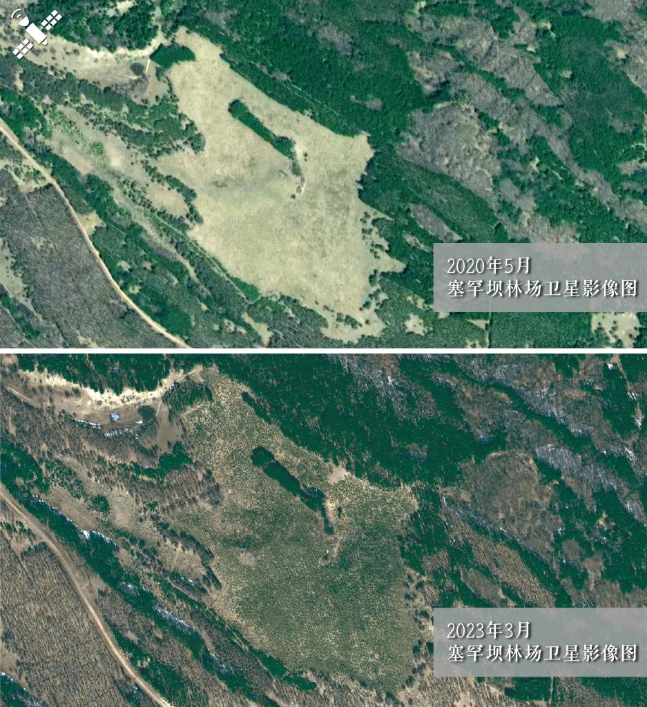 解讀:2023年與2020年相比,塞罕壩林場(chǎng)內(nèi)的森林覆蓋面積持續(xù)提升。