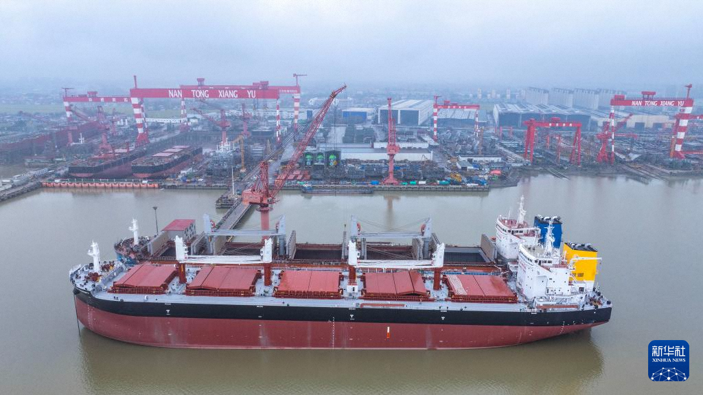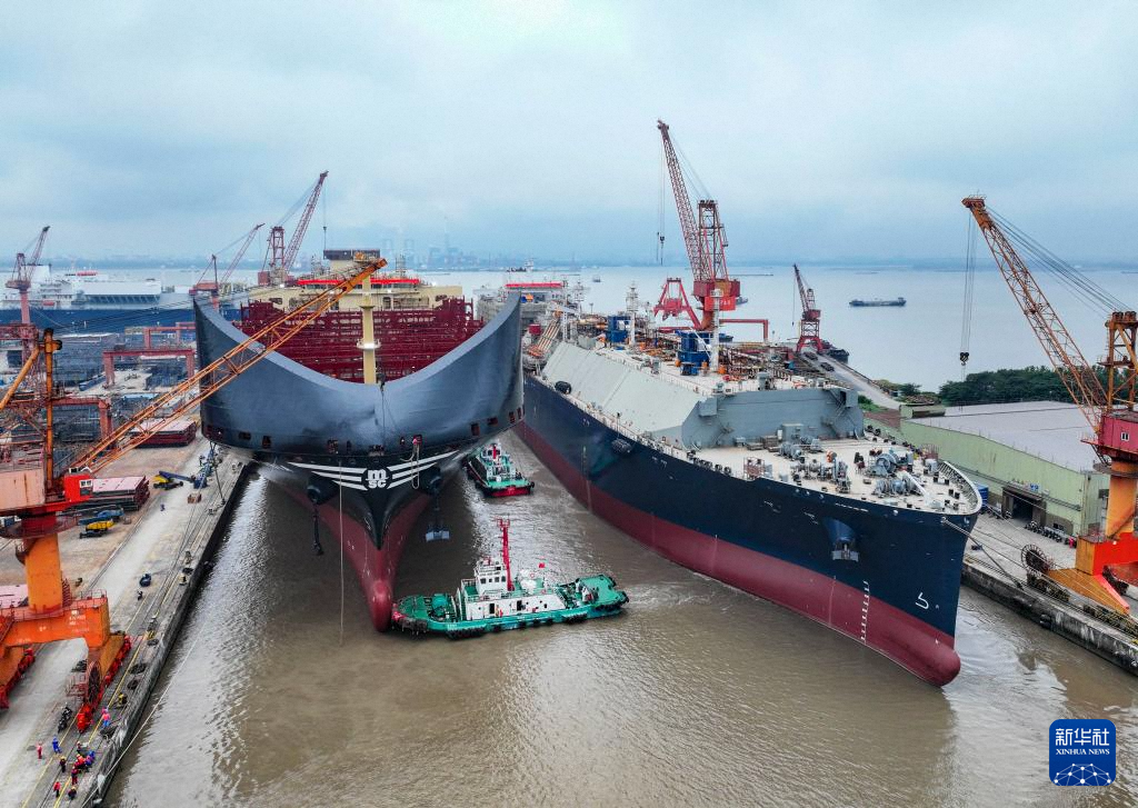 10月14日拍攝的位于江蘇省泰興市的江蘇揚(yáng)子鑫福造船有限公司船塢內(nèi)建造的大型船舶(無(wú)人機(jī)照片)。新華社發(fā)(顧繼紅攝)