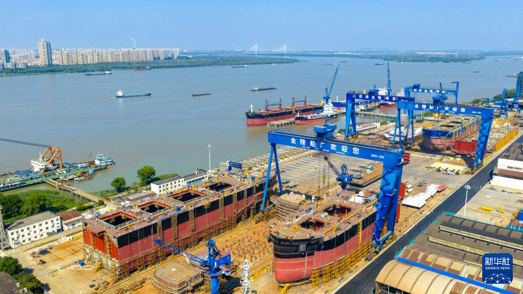 這是10月9日在江蘇省南京市鼓樓區(qū)拍攝的招商工業(yè)南京金陵船廠(無(wú)人機(jī)照片)。新華社發(fā)(楊素平攝)