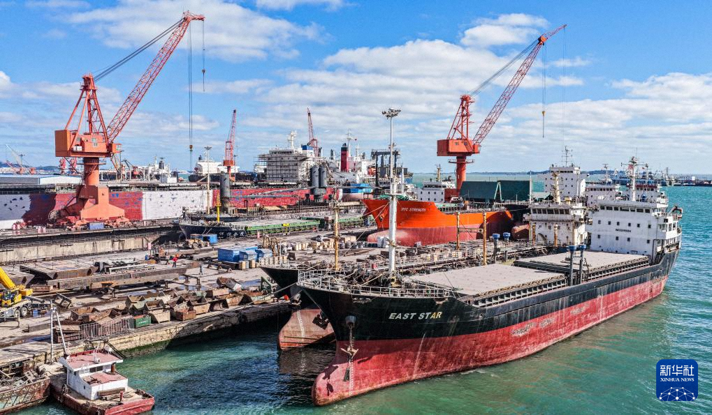 10月14日拍攝的位于江蘇省江都經(jīng)濟(jì)開(kāi)發(fā)區(qū)的揚(yáng)州中遠(yuǎn)海運(yùn)重工有限公司生產(chǎn)廠區(qū)(無(wú)人機(jī)照片)。新華社發(fā)(任飛攝)