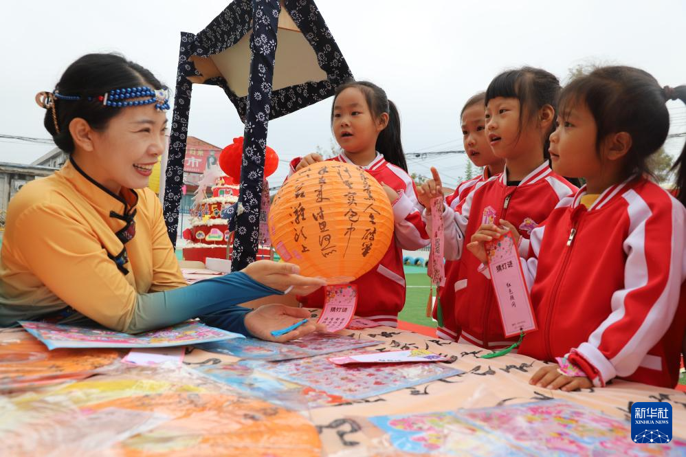 9月28日,在山東省濱州市沾化區(qū)馮家鎮(zhèn)李家幼兒園,孩子們在“拾趣品中秋 童心迎國慶”活動上猜燈謎。