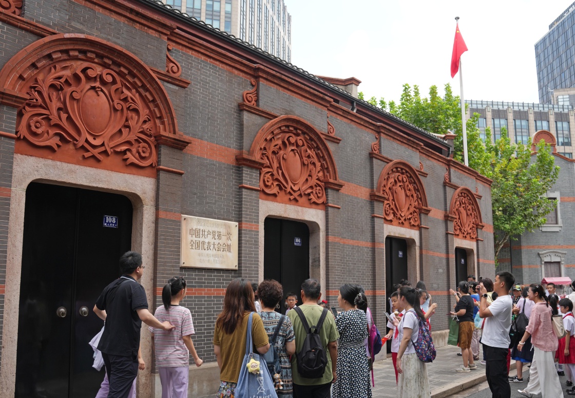 10月1日,游客在上海中共一大會址前參觀拍照。
