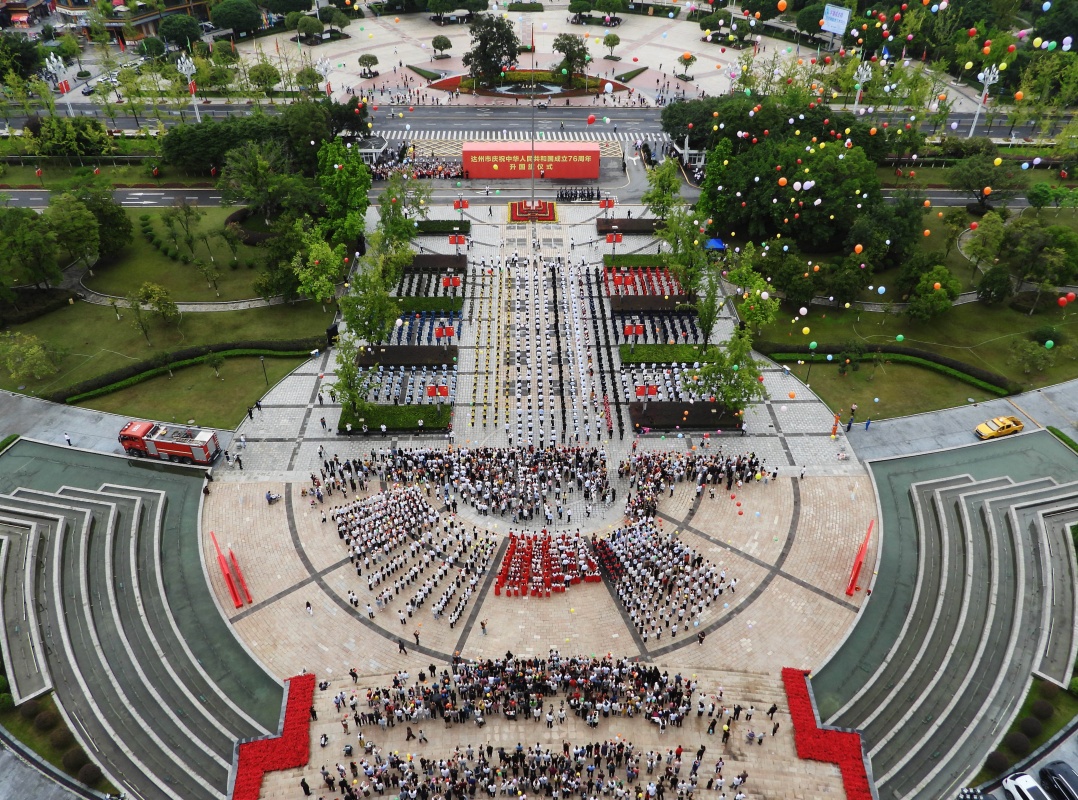 10月1日在四川省達州市人民廣場拍攝的升旗儀式。
