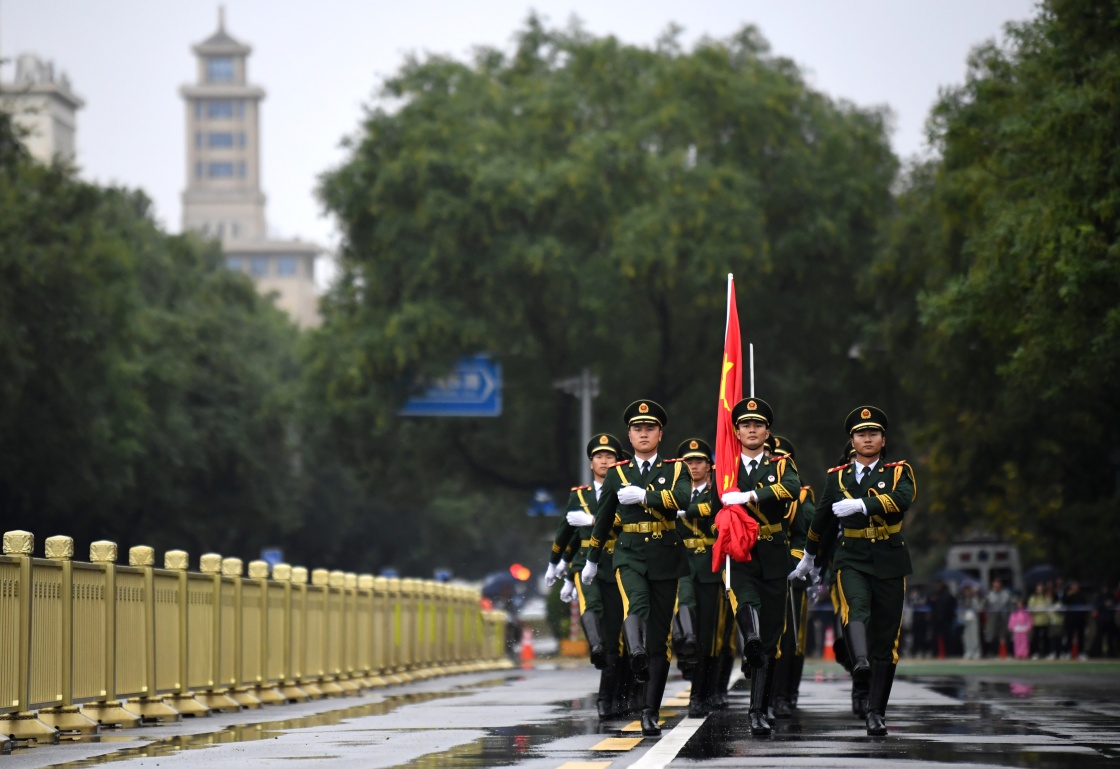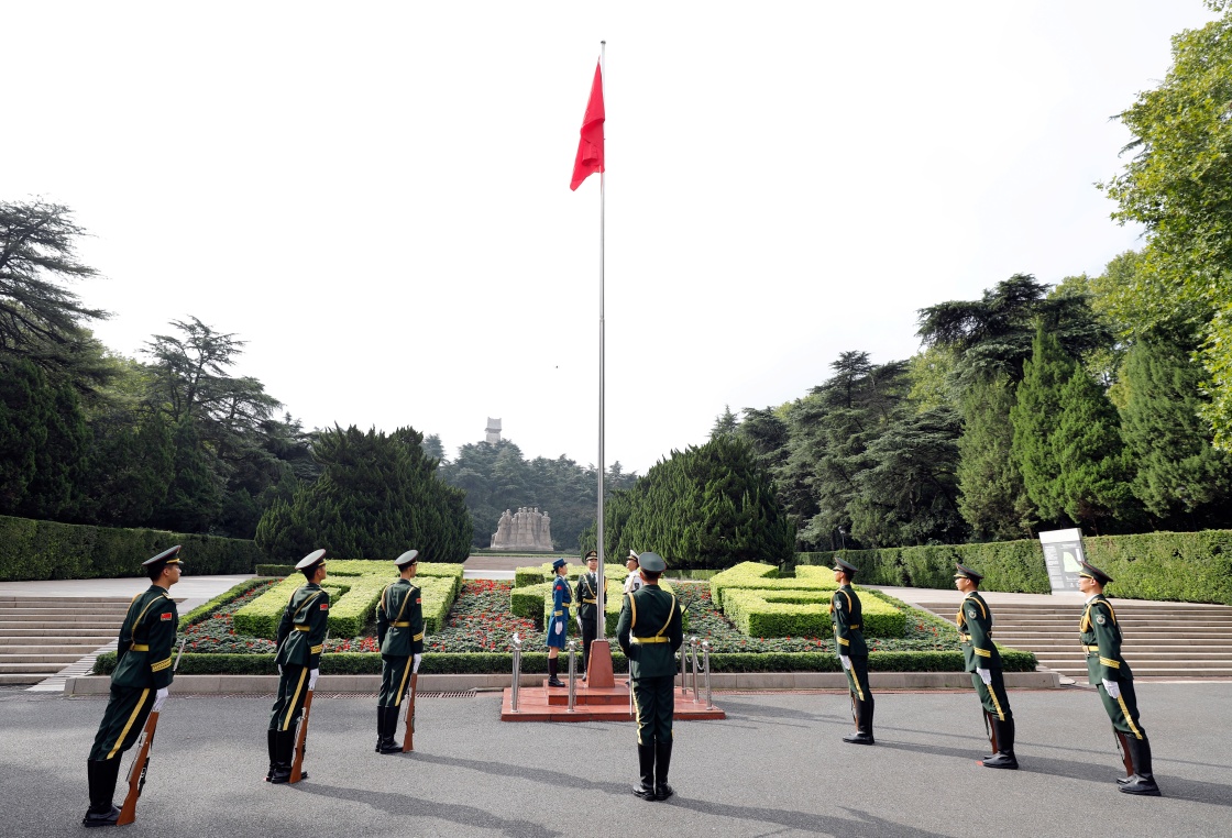 10月1日,南京雨花臺烈士陵園舉行升旗儀式。