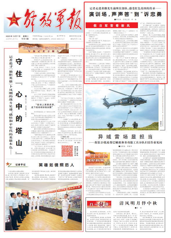 假日探營,記者發(fā)現(xiàn),英雄精神已成為浸潤部隊的紅色家風,繼而轉(zhuǎn)化為官兵矢志報國的精神動力。演訓場上,鏗鏘的答“到”聲,在記者耳邊回響,展示了新時代革命軍人的忠誠與勇敢。