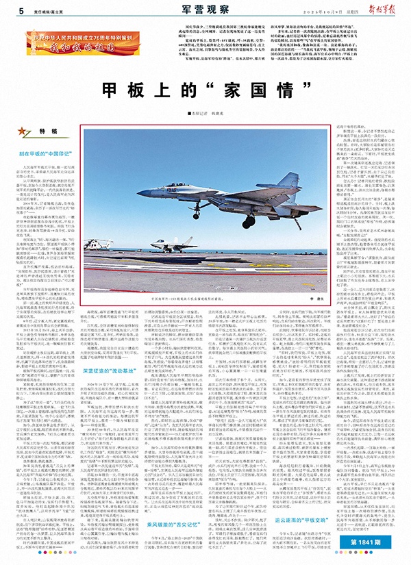 多年來(lái),記者曾一次次隨艦出海,在甲板上見(jiàn)證過(guò)日出時(shí)的壯麗,也經(jīng)歷過(guò)風(fēng)暴中的驚濤,更難忘戰(zhàn)機(jī)著艦與放飛的驚險(xiǎn)瞬間,以及那些“寫(xiě)”在甲板上的家國(guó)情懷。