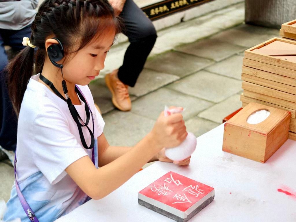 晨曦初露,濟寧曲阜孔廟大成殿前,身著朱紅禮服的主禮官手持笏板,朗聲宣禮。游客整理衣冠,肅然而立,在莊重的“祈福拜師”儀式中躬身行禮。儀式結束后,體驗區(qū)內(nèi)墨香彌漫,游客輕撫拓板、蘸墨鋪紙,親手拓印《論語》篇章,在新潮體驗中感受傳統(tǒng)文化。“親手拓印讓儒家文化變得可觸可感。”來自江蘇徐州的游客王女士感慨道。