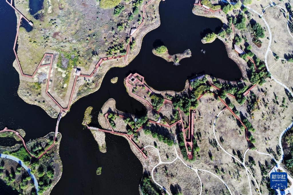 這是10月7日拍攝的哈爾濱太陽島國(guó)家濕地公園景色(無人機(jī)照片)。