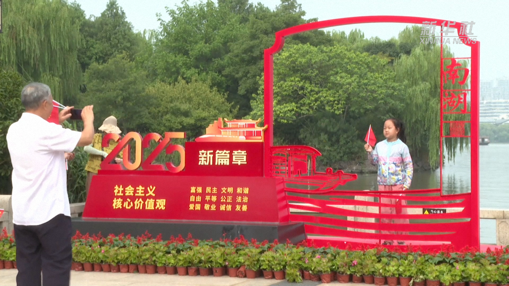 國慶期間,浙江嘉興南湖景區(qū)迎來“紅色旅游”熱。景區(qū)精心設(shè)置“南湖1921列車”“我為祖國送祝福”等多個特色打卡點(diǎn),游客們合影留念,定格與紅船起航地“同框”的瞬間。