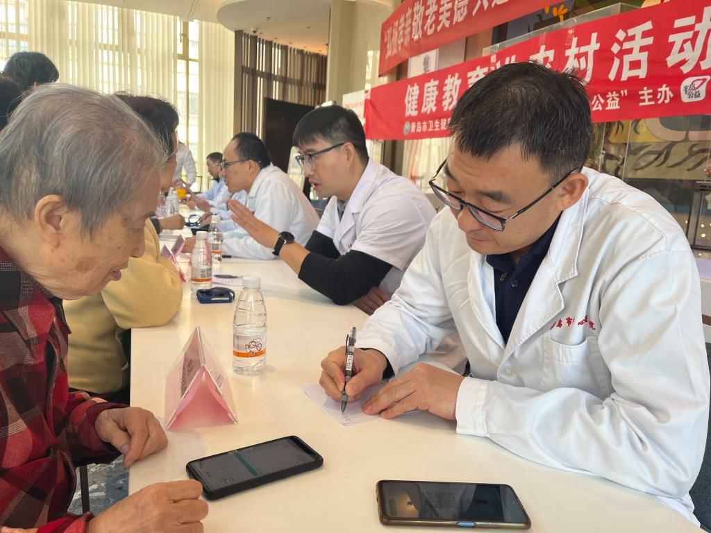 在活動現(xiàn)場,一幕幕溫馨的場景不斷上演:老人們有序地在各個科室專家答疑桌前靜靜地排隊等候;醫(yī)生們或蹲或坐,耐心地傾聽每位老人的訴求,細(xì)致解答他們的疑問……