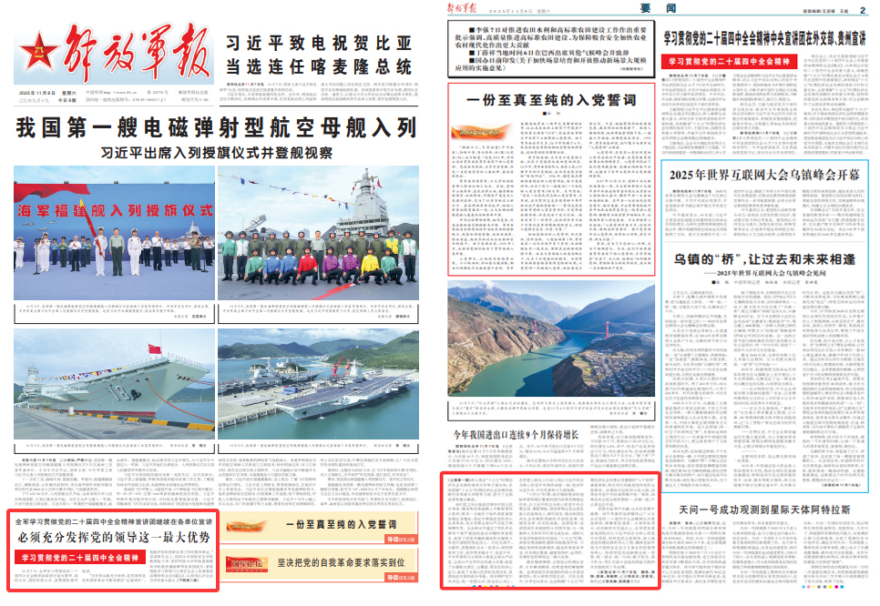 11月7日,全軍學習貫徹黨的二十屆四中全會精神宣講團分赴火箭軍、國防大學、國防科技大學、武警部隊展開宣講。