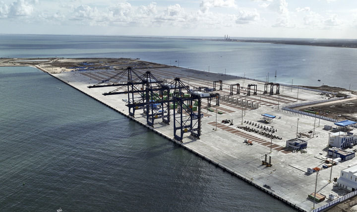 這是2023年12月1日在埃及亞歷山大拍攝的由中國港灣工程有限責任公司承建的阿布基爾集裝箱碼頭。新華社發(fā)(中國港灣工程有限責任公司供圖)