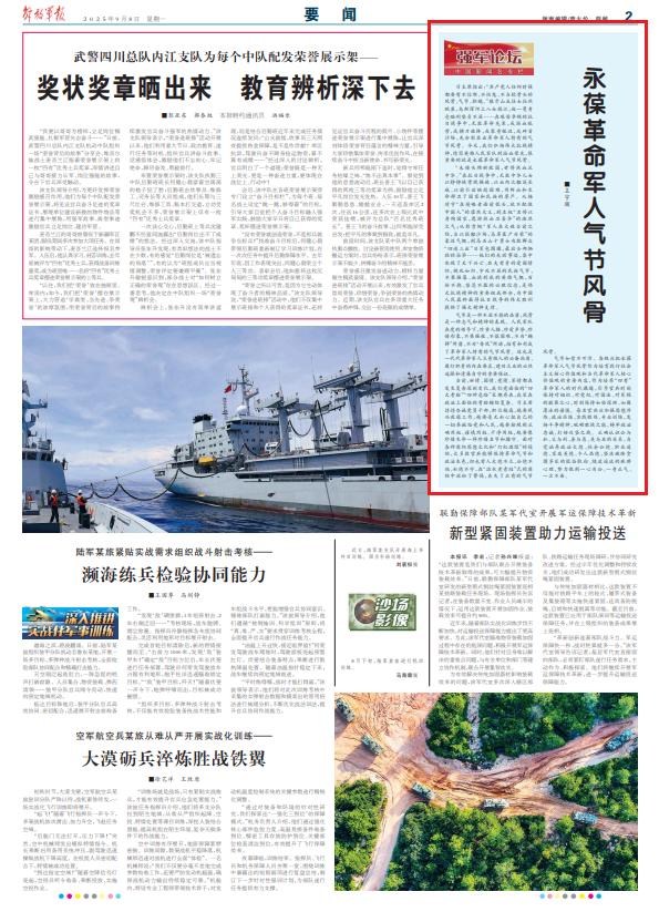 習(xí)主席指出:“共產(chǎn)黨人任何時候都要有不信邪、不怕鬼、不當(dāng)軟骨頭的風(fēng)骨、氣節(jié)、膽魄。”狼牙山五壯士壯烈跳崖,烏斯渾河上八女投江,趙一曼身受酷刑堅貞不屈……在艱苦卓絕的抗日戰(zhàn)爭中,無數(shù)革命先輩,或瀝血孤營,或橫刀敵陣,或裂身銀漢,或碎首沙場,充分彰顯出革命軍人特有的氣節(jié)風(fēng)骨。今天,我們弘揚偉大抗戰(zhàn)精神,續(xù)寫英雄人民軍隊的浴血榮光,很重要的就是永葆革命軍人氣節(jié)風(fēng)骨。