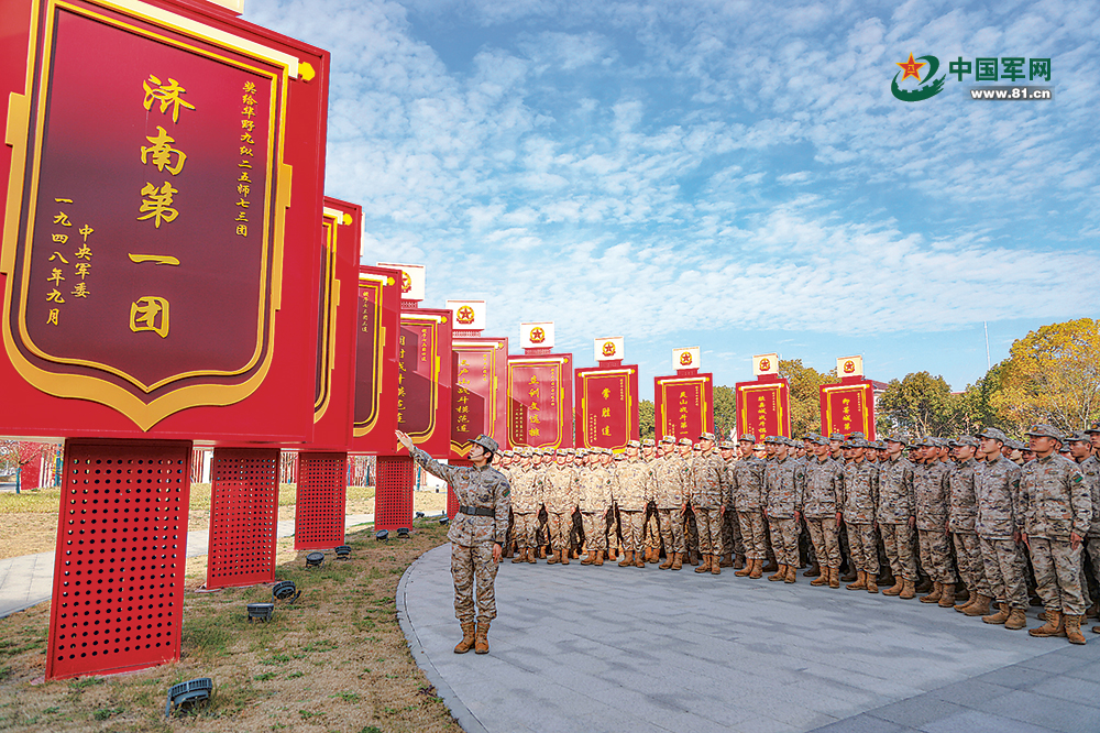 陸軍某旅在戰(zhàn)旗廣場(chǎng)開(kāi)展教育活動(dòng),講解員為官兵講述戰(zhàn)旗背后的英雄故事。 黃振宇攝