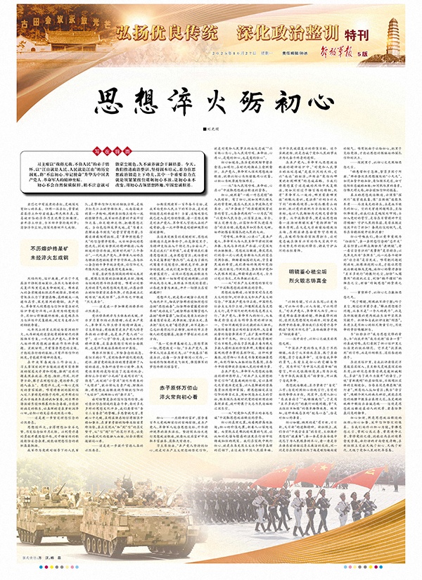 從井岡山的星火到延安窯洞的燈火,從西柏坡的進(jìn)京趕考到新時(shí)代的強(qiáng)國強(qiáng)軍號角,一代代共產(chǎn)黨人、革命軍人始終將思想政治鍛造作為終身課題。實(shí)踐證明,只有蕩滌思想的塵埃,才能校準(zhǔn)行動(dòng)的航標(biāo);只有淬煉信仰的純度,才能提升精神的高度。