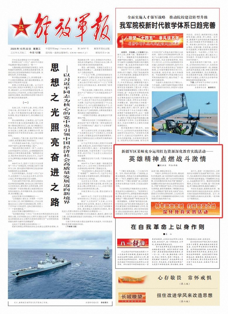 “紅色資源是開展教育的生動素材,更是滋養(yǎng)官兵精神的沃土?!痹搸燁I導介紹,革命戰(zhàn)爭年代,該師前身部隊轉戰(zhàn)西部多地,先后參加大小戰(zhàn)斗2000余次,涌現出“十顆紅星炮班”“特等功臣連”等一批英雄集體。在聚焦“鑄牢政治忠誠、打好攻堅之戰(zhàn)”深化教育實踐活動中,他們注重發(fā)揮紅色資源鑄魂育人作用,堅持把紅色資源利用好、把紅色傳統(tǒng)發(fā)揚好、把紅色基因傳承好,教育引導官兵在回顧部隊光輝歷史和優(yōu)良傳統(tǒng)中,汲取奮進力量、增強必勝信念。