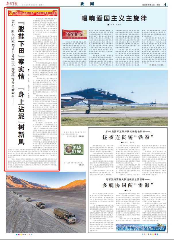 優(yōu)化官兵探親休假審批流程、組織軍地鵲橋會(huì)為大齡官兵牽線搭橋……初秋時(shí)節(jié),第74集團(tuán)軍某旅機(jī)關(guān)政治干部紛紛深入營連一線蹲連住班,在近距離“解剖麻雀”、面對(duì)面傾聽心聲中掌握官兵急難愁盼,主動(dòng)靠前解決官兵的撓頭事、煩心事,以“脫鞋下田”“身上沾泥”的務(wù)實(shí)作風(fēng)立起政治干部好樣子。